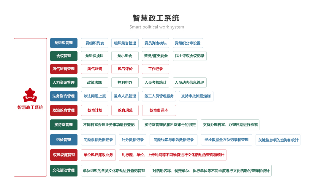 包含控制臺(tái)、組織架構(gòu)、黨建動(dòng)態(tài)、黨員學(xué)習(xí)、組織活動(dòng)、志愿服務(wù)、黨費(fèi)管理、監(jiān)督執(zhí)紀(jì)功能模塊。通過(guò)黨建在線(xiàn)學(xué)習(xí)教育,解決黨建學(xué)習(xí)難問(wèn)題,實(shí)現(xiàn)便捷化管理;黨務(wù)工作流程及黨建資訊全掌握、黨建工作全方位可視,統(tǒng)一數(shù)據(jù)標(biāo)準(zhǔn),智能分析績(jī)效考評(píng),成績(jī)一目了然,做到數(shù)據(jù)指標(biāo)化;積極推進(jìn)黨建工作高效完成,信息高效處理。